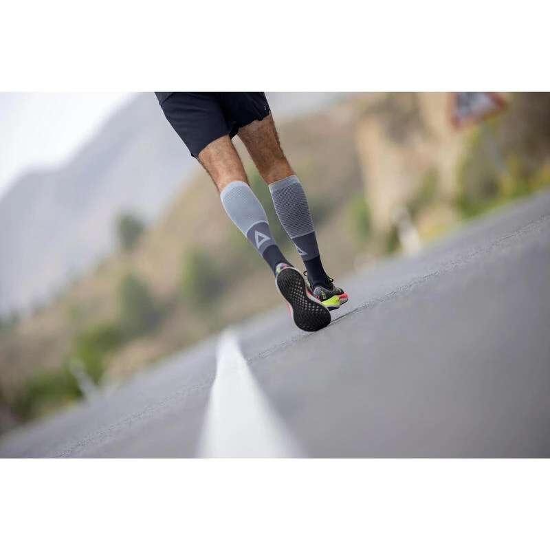 8735776Ons productontwikkelingsteam ontwierp deze compressiekousen voor hardlopers die hun prestaties willen verbeteren.Waarom druk uitoefenen op de kuit? Om de bloedcirculatie te verbeteren, trillingen te verminderen en de biomechanische waarden van de hardloper te verbeteren.