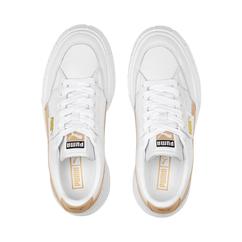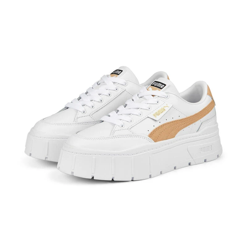 PRODUCT HISTORIE Dacht je dat de Mayze het toppunt van stijl was? De Mayze Stack herneemt het in een modieuzere versie dan ooit. Het heeft een oversized zool en een bovenkant geïnspireerd op enkele van onze meest iconische ontwerpen. DETAILSuède inzetstukkenRubberen zool PUMA Formstrip aan binnen- en buitenzijdeLogo PUMA Cat op hiel