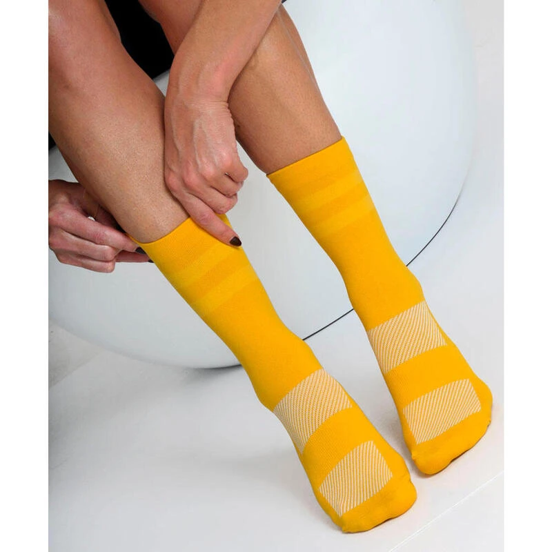 Fietssokken Geel ademend met compressieband en anti slip 8andCounting