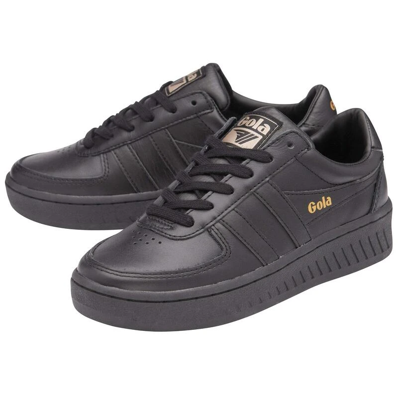 De Gola Grandslam Leather voor dames is een klassieker in wording. Met een strak en eenvoudig ontwerp is deze leren damessneaker pure fun. De Gola Grandslam Leather is een klassiek silhouet met een lichtgewicht zool en een eenvoudig bovenwerk met een contrasterende zilveren rand. Het is een herbewerking van het archief Gola. Dress ze up or down dit seizoen, de Grandslam Leather kan gemakkelijk worden gecombineerd met jeans of rokken.- Zwart lederen bovendeel- Lichtgewicht zool- Contrasterende zilveren rand- Dames stijl- Klassieke court stijl