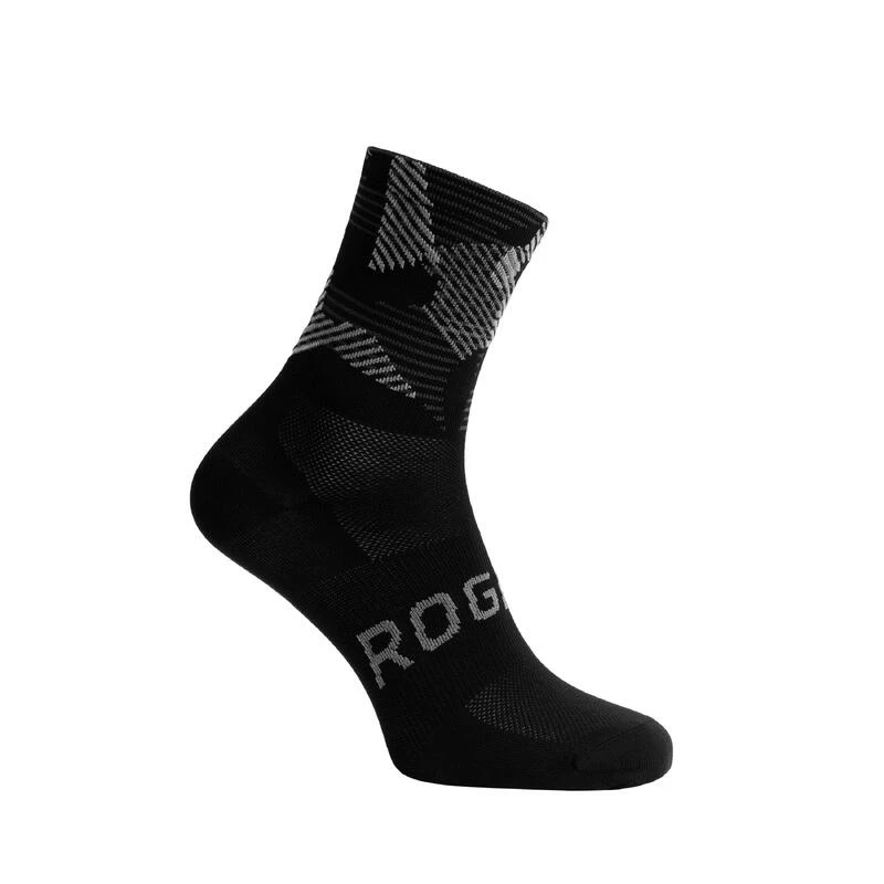 De Camo sokken zijn onderdeel van de Rogelli Camo set en passen perfect bij het Camo fietsshirt, de Camo fietsbroek en de Camo fietshandschoenen. De 160 mm sokken zijn gemaakt van een vochtregulerende en antibacteriële Q-skin stof en hebben een anatomische pasvorm. De versterkte band rond de wreef biedt extra ondersteuning. Deze versterkende weeftechniek is ook toegepast rond de hiel en de tenen. De naadloze tenen voorkomen bovendien irritatie.