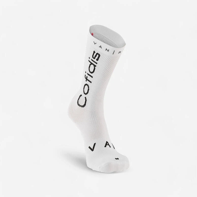 8758426Op basis van de hoge eisen die profrenners stellen, ontwikkelden we deze technische en hoogwaardige sokken op kuithoogte.Ontwikkeld in Italië, op verzoek van heel wat fervente wielrenners. Heel dun, ademend en licht. Replica van het model dat gebruikt wordt door de COFIDIS ProTour-ploeg.